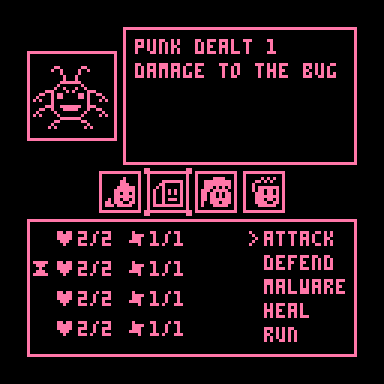 Cybercrawl is a cyberpunk dungeon crawler where you control a group of four bug hunters trying to stop strange glitches in cyberspace. Fight against bugs, spam mail, emojis, and robots to save cyberspace.